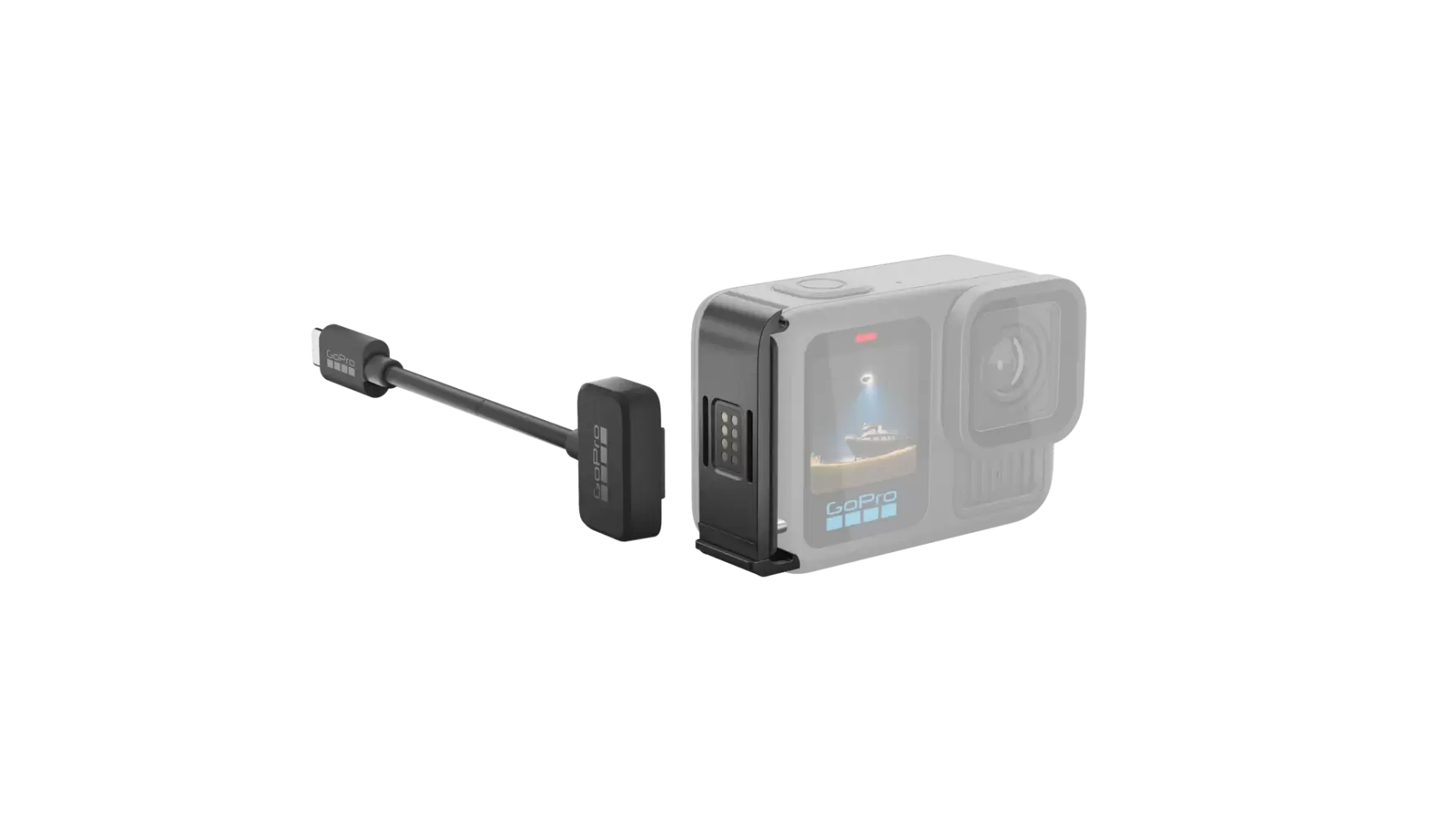 GoPro Contacto Magnetic Door and Power Cable Kit is a side cover kit with a charging port and cables that keeps your GoPro charged and extends its battery life. Install the magnetic door, connect the cable to the USB-C port, and ensure constant power during filming, timelapses, or outdoor activities.