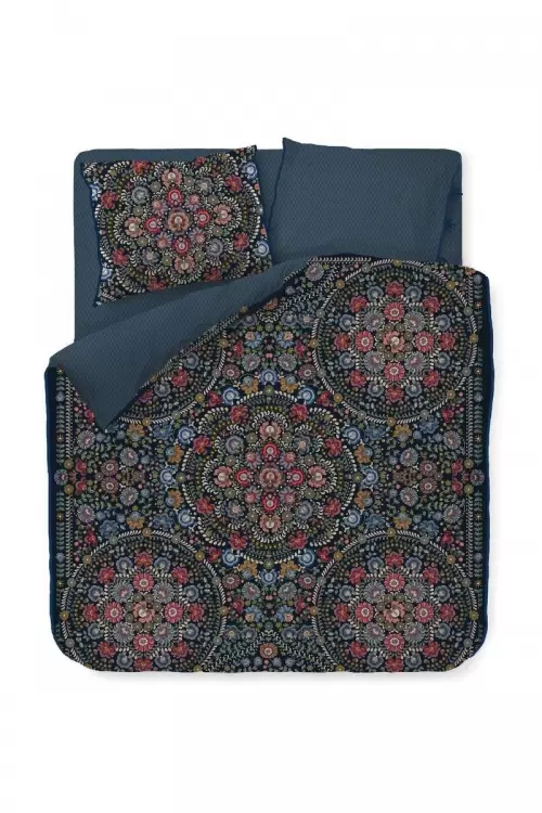 Check out the Cece Fiore duvet cover, showcasing exquisite and detailed fantasy blooms paired with a gentle geometric pattern in the backdrop, creating a stunning contrast with those vibrant flowers. Flip it around, and you'll find a leaf design on the reverse side of the duvet cover and pillowcase,..