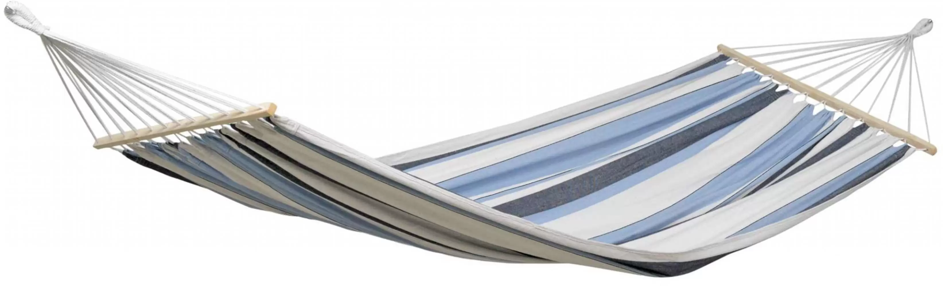 Folosește un hamac super confortabil, perfect pentru camping, echipat cu o bară transversală care ajută la echilibrarea greutății. Fabricat din bumbac natural, acesta beneficiază de un tratament special ce îl protejează de razele ultraviolete. E moale, plăcut la atingere și extrem de rezistent.