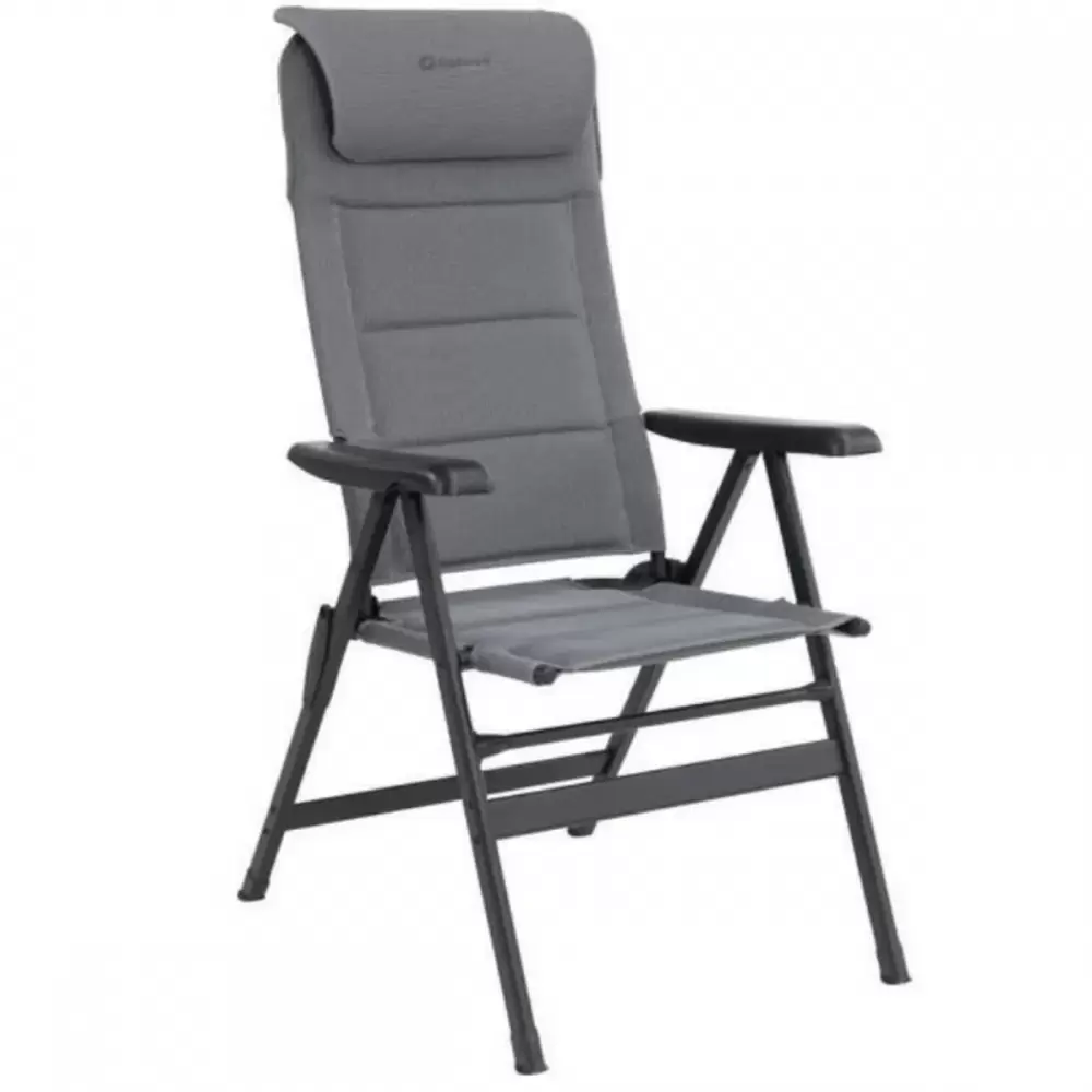 Scaun pliabil Outwell Teton — este un scaun ușor, cu spătar înalt, dotat cu căptușeală cu uscare rapidă, șapte poziții reglabile și tetiere detașabilă. Dispune de cotiere ergonomice și suport lombar pentru o ședere confortabilă.