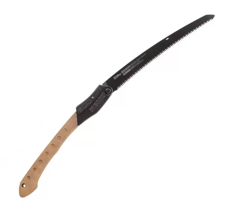 Silky Bigboy 2000 Outback Edition — складная пила, походная пила для активного отдыха. Пила выполнена в черном цвете, с уникальным черным покрытием, защищающим лезвие и зубья от окисления и износа. Это покрытие также снижает блики, делая использование пилы более комфортным. Лезвие имеет конусный профиль и зубья без разводки, что минимизирует трение и облегчает пиление. Лезвие фиксируется в двух положениях для удобства работы.